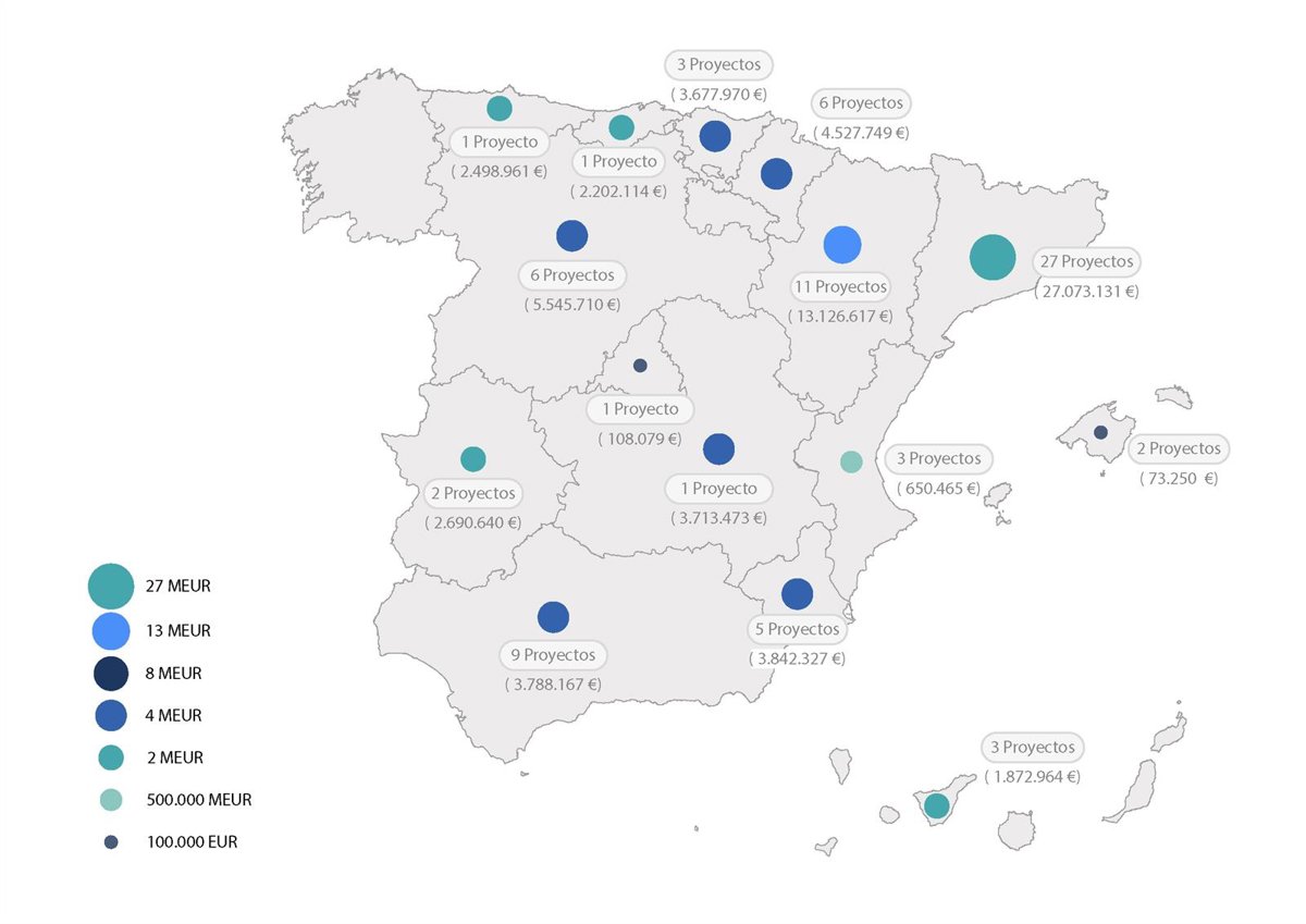 Por comunidades de origen, Cataluña (27) acoge el mayor número de propuestas seleccionadas, seguida de Aragón (11) y Andalucía (9). Dada la naturaleza de la convocatoria y su vinculación directa con la actividad del sector primario, los criterios de selección de los proyectos han ponderado, además de su rigor técnico y grado de innovación, la ubicación en zonas de Transición Justa y Reto Demográfico. Así, del total de las ayudas propuestas, más de la mitad, 42,1 millones, se conceden a iniciativas localizadas en estos territorios.