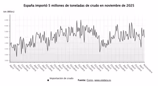 Las importaciones de crudo a España se situaron en los 5,005 millones de toneladas en noviembre, lo que supone una descenso del 8,5% con respecto al mismo mes del año pasado, según datos de la Corporación de Reservas Estratégicas de Productos Petrolíferos (Cores).