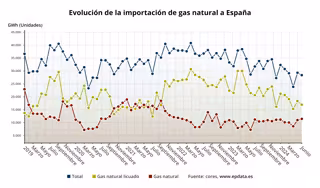En el año móvil, las importaciones netas de gas natural a España se situaron en el periodo en los 317.838 GWh, con una caída interanual del 6,9%.