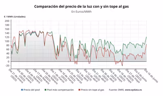 A este precio medio del 'pool' se sumaría la compensación a las gasistas, que tiene que ser abonada por los consumidores beneficiarios de la medida, los consumidores de la tarifa regulada (PVPC) o los que, a pesar de estar en el mercado libre, tienen una tarifa indexada, pero que se sitúa nuevamente en 0 euros/MWh, situación que se repite desde el pasado 27 de febrero.