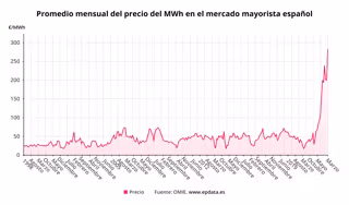 Asimismo, en lo que va de año el precio medio del 'pool' se sitúa en 229,37 euros, es decir, más del doble del registro de 2021, que fue el año más caro con un promedio de 111,93 euros.
