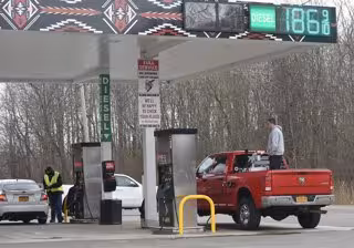 April 21, 2020 - Irving, New York USA: Western New Yorkers fill up their vehicles as well as auxiliary storage containers in Irving, New York just south of Buffalo. As the Covid 19 pandemic takes its toll on the economy so follows the oil market as the - Contacto