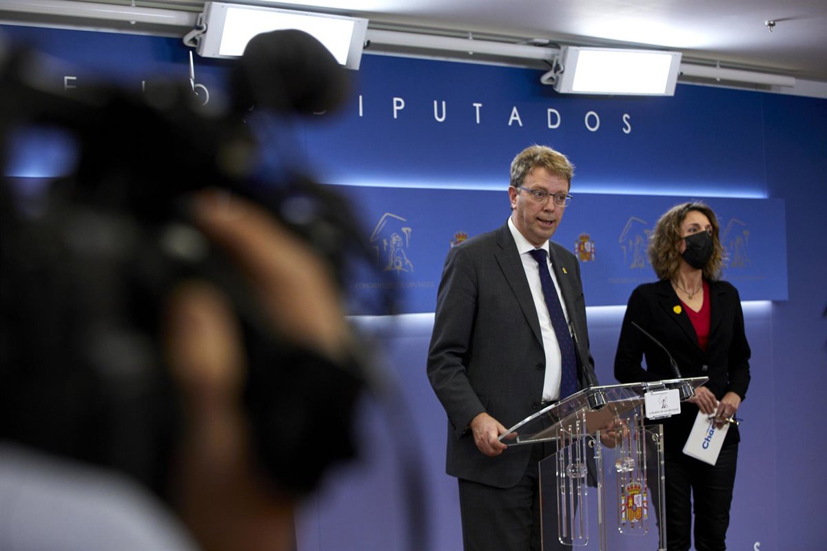 El diputado del PDeCAT Ferran Bel y la candidata de este partido a la Presidencia de la Generalitat de Cataluña, ngels Chacón, ofrecen una rueda de prensa en el Congreso - EUROPA PRESS/J. Hellín. POOL - Europa Press