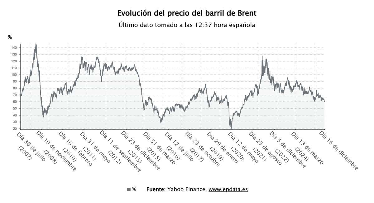 El coste del barril de crudo Brent bajaba casi un 2% este martes ante la perspectiva de un posible final a la guerra de Ucrania, lo que llevaba el precio del petróleo de referencia para Europa por debajo del umbral de los 60 dólares por primera vez desde el pasado mes de mayo.