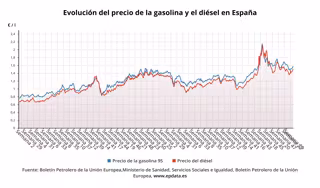 En el caso del diésel, el precio en España también es inferior al de la media de la UE, que es de 1,627 euros, y de la zona euro, donde marca un precio de 1,654 euros.