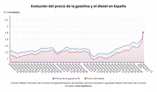 Evolución del precio del diésel y de la gasolina en España - EPDATA