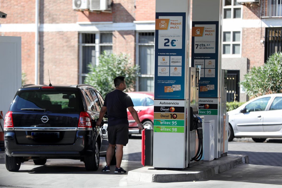 Personas ponen gasolina en sus coches en una gasolinera de Madrid. - Jesús Hellín - Europa Press