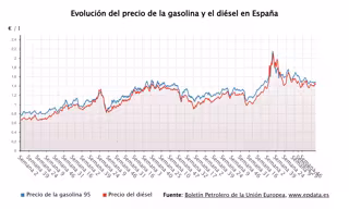 En el caso del diésel, el precio en España también es inferior al de la media de la UE, que es de 1,522 euros, y de la zona euro, donde marca un precio de 1,544 euros.