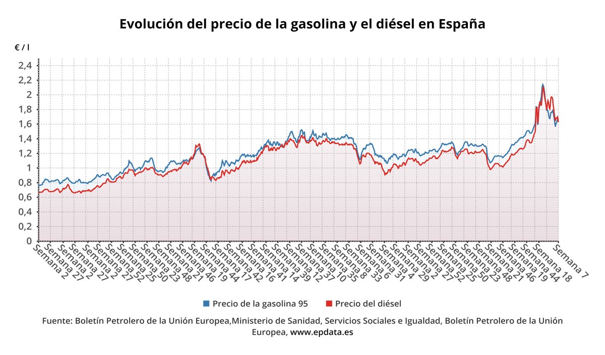 Estas cifras se registran en un entorno de precios del crudo ligeramente al alza actual contexto, marcado por la guerra en Ucrania. Así, este jueves el barril de Brent, de referencia en Europa, cotizaba alrededor de los 85,5 dólares, mientras que el Texas americano se intercambia en torno a los 78,8 dólares.