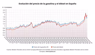 En el caso del diésel, el precio en España es inferior al de la media de la UE, que es de 1,889 euros, aunque no con respecto al de la zona euro, con un precio de 1,913 euros.