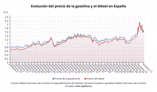 Con estos niveles de precios, ambos carburantes se mantienen lejos de los máximos que tocaron el pasado verano, cuando en julio la gasolina alcanzó los 2,141 euros y el gasóleo los 2,1 euros.