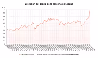 El precio medio de la gasolina en España ha proseguido esta semana con su escalada y ha tocado un nuevo máximo histórico, al repuntar hasta los 1,968 euros por litro, tras registrar una subida del 1,44% con respecto a siete días atrás, según datos del Boletín Petrolero de la Unión Europea recogidos por Europa Press.