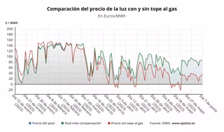 A este precio medio del 'pool' se sumaría la compensación a las gasistas, que tiene que ser abonada por los consumidores beneficiarios de la medida, los consumidores de la tarifa regulada (PVPC) o los que, a pesar de estar en el mercado libre, tienen una tarifa indexada, pero que se sitúa nuevamente en 0 euros/MWh, situación que se repite desde el pasado 27 de febrero.