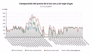 A este precio del 'pool' se suma la compensación a las gasistas, que tiene que ser abonada por los consumidores beneficiarios de la medida, los consumidores de la tarifa regulada (PVPC) o los que, a pesar de estar en el mercado libre, tienen una tarifa indexada, que para este sábado se situará en 0 euros/MWh por noveno día consecutivo.