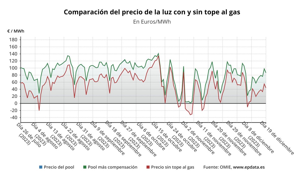 La denominada 'excepción ibérica' se extendió hasta el próximo 31 de diciembre, tras el acuerdo alcanzado por España y Portugal con la Comisión Europea. Así, se prolongaba siete meses, hasta final de este año, y no se excluía que pudiera prorrogarse más tiempo si dicho marco también se aumentaba.