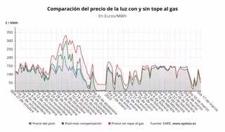 A este precio del 'pool' se suma la compensación a las gasistas, que tiene que ser abonada por los consumidores beneficiarios de la medida, los consumidores de la tarifa regulada (PVPC) o los que, a pesar de estar en el mercado libre, tienen una tarifa indexada, que para mañana se situará en 0 euros/MWh, situación que se repite desde el pasado 27 de febrero.