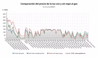A este precio medio del 'pool' se sumaría la compensación a las gasistas, que tiene que ser abonada por los consumidores beneficiarios de la medida, los consumidores de la tarifa regulada (PVPC) o los que, a pesar de estar en el mercado libre, tienen una tarifa indexada, pero para este martes se situará nuevamente en 0 euros/MWh, situación que se repite desde el pasado 27 de febrero.