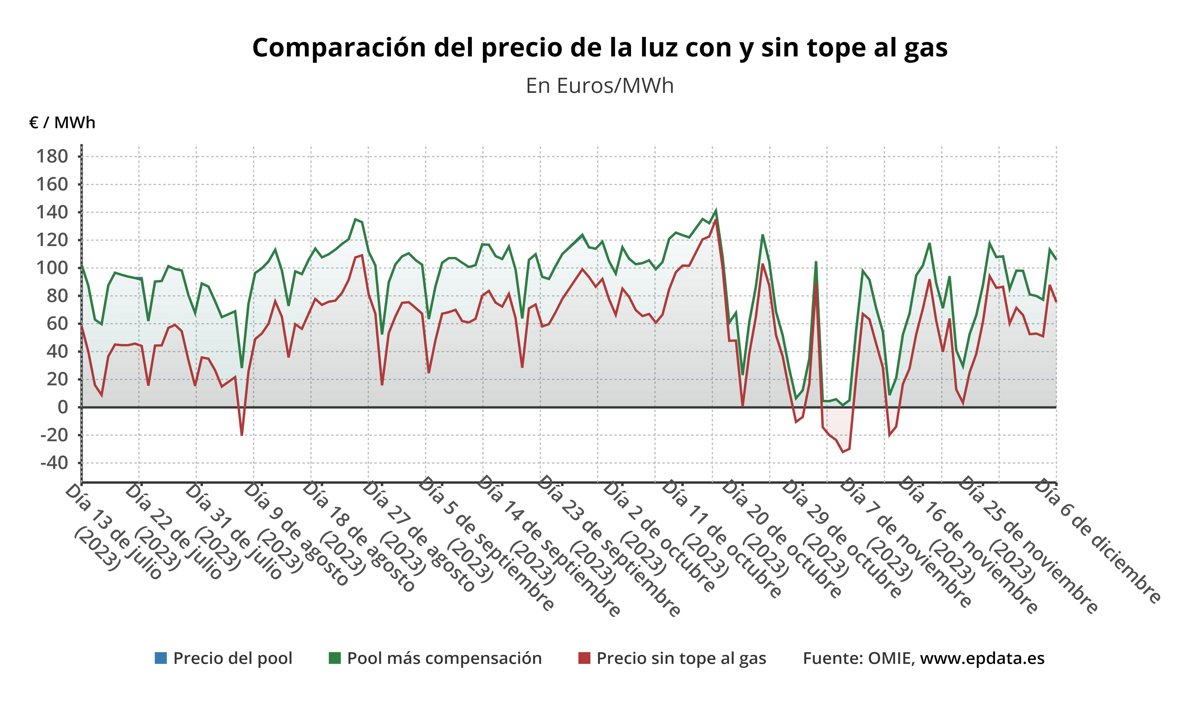 La denominada 'excepción ibérica' se extendió hasta el próximo 31 de diciembre, tras el acuerdo alcanzado por España y Portugal con la Comisión Europea. Así, se prolongaba siete meses, hasta final de este año, y no se excluía que pudiera prorrogarse más tiempo si dicho marco también se aumentaba.