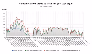 A este precio del 'pool' se sumaría la compensación a las gasistas, que tiene que ser abonada por los consumidores beneficiarios de la medida, los consumidores de la tarifa regulada (PVPC) o los que, a pesar de estar en el mercado libre, tienen una tarifa indexada, pero para este martes se situará nuevamente en 0 euros/MWh, situación que se repite desde el pasado 27 de febrero.