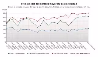 Evolución del precio de la luz desde el comienzo de la aplicación del tope al gas - EPDATA