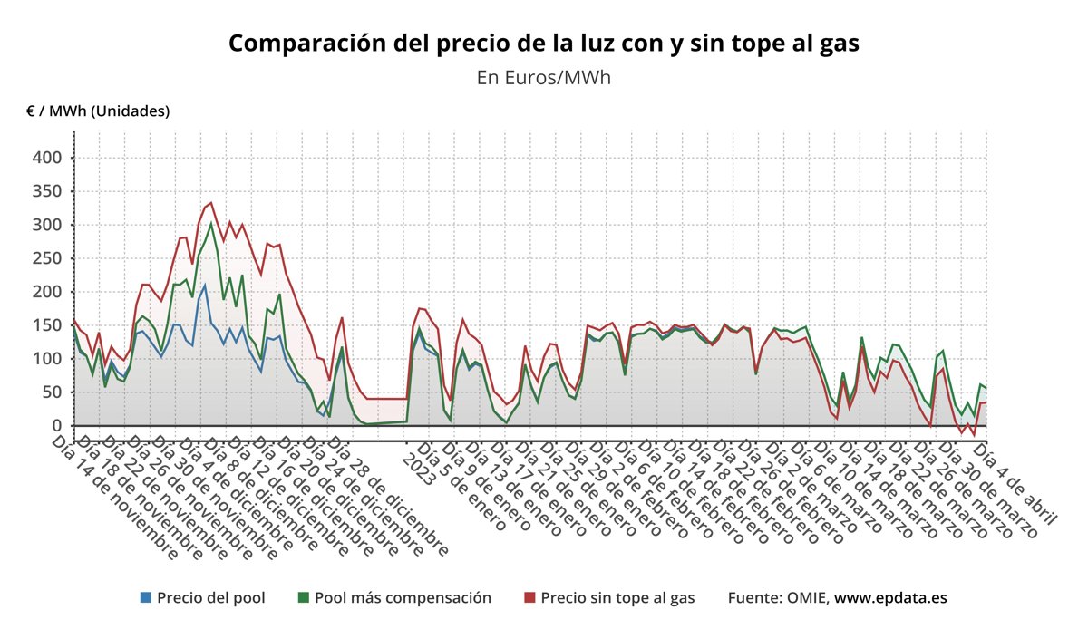 En concreto, el acuerdo no solamente representa una extensión de la excepción ibérica que ya se aplicaba, sino que implica algunos ajustes para acomodarlo, como la referencia de precios, que hasta ahora se incrementaba en cinco euros al mes, y ahora será más suave.