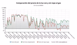 A este precio medio del 'pool' se sumaría la compensación a las gasistas, que tiene que ser abonada por los consumidores beneficiarios de la medida, los consumidores de la tarifa regulada (PVPC) o los que, a pesar de estar en el mercado libre, tienen una tarifa indexada, pero que se sitúa nuevamente en 0 euros/MWh, situación que se repite desde el pasado 27 de febrero.
