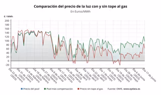 A este precio medio del 'pool' se sumaría la compensación a las gasistas, que tiene que ser abonada por los consumidores beneficiarios de la medida, los consumidores de la tarifa regulada (PVPC) o los que, a pesar de estar en el mercado libre, tienen una tarifa indexada, pero que se sitúa nuevamente en 0 euros/MWh, situación que se repite desde el pasado 27 de febrero.