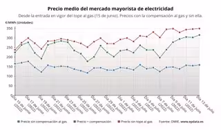 Evolución del precio de la luz desde el comienzo de la aplicación del tope al gas - EPDATA