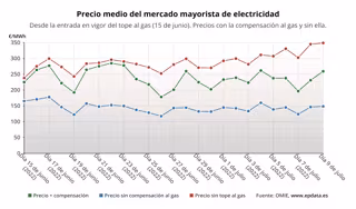Evolución del precio de la luz con y sin compensación al gas - EPDATA