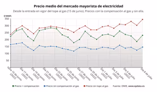 Evolución del precio de la luz desde el comienzo de la aplicación del tope al gas - EPDATA