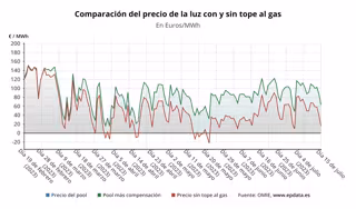 A este precio medio del 'pool' se sumaría la compensación a las gasistas, que tiene que ser abonada por los consumidores beneficiarios de la medida, los consumidores de la tarifa regulada (PVPC) o los que, a pesar de estar en el mercado libre, tienen una tarifa indexada, pero que se sitúa nuevamente en 0 euros/MWh, situación que se repite desde el pasado 27 de febrero.