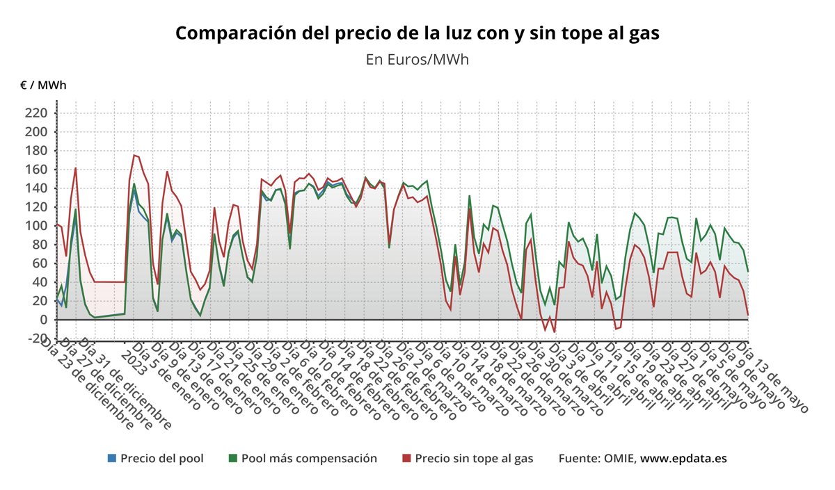 Actualmente, el mecanismo lleva sin tener efecto sobre los procesos de casación marginal en los mercados mayoristas desde finales de febrero, debido al descenso del precio del gas natural por debajo de los umbrales fijados para su aplicación, pero, en caso necesario, la prórroga permitirá mantener un precio razonable, no tan dependiente de la evolución del gas natural.