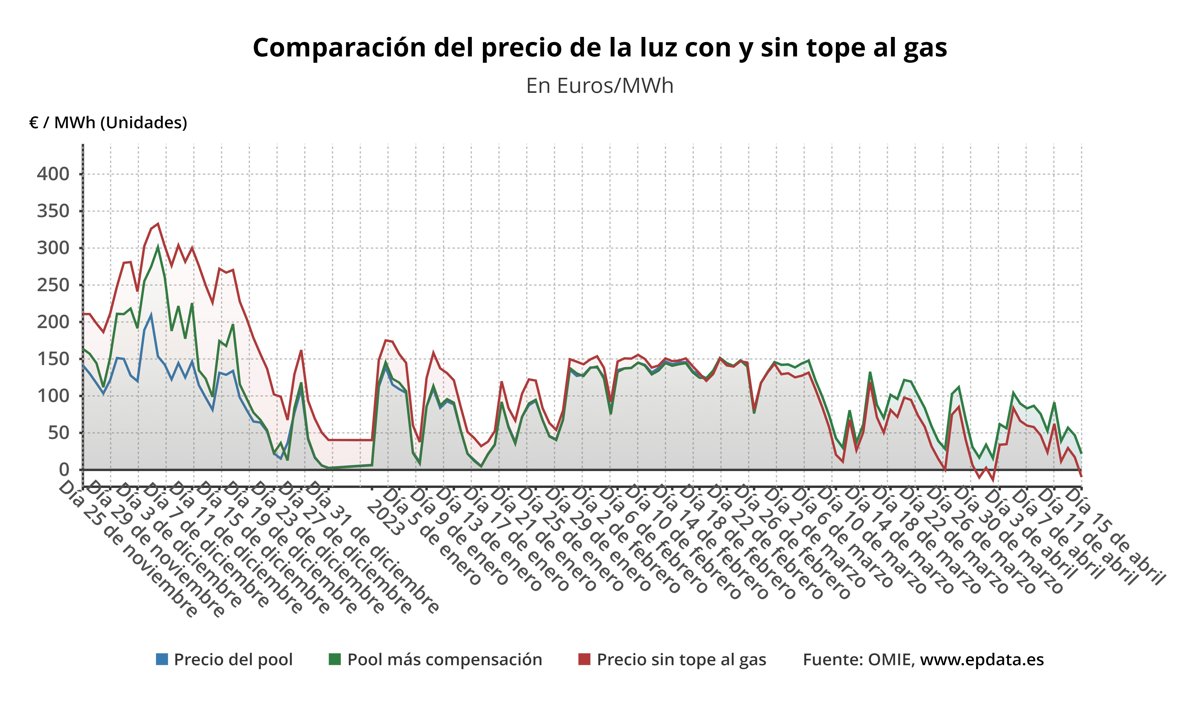 Actualmente, el mecanismo lleva sin tener efecto sobre los procesos de casación marginal en los mercados mayoristas desde finales de febrero, debido al descenso del precio del gas natural por debajo de los umbrales fijados para su aplicación, pero, en caso necesario, la prórroga permitirá mantener un precio razonable, no tan dependiente de la evolución del gas natural.