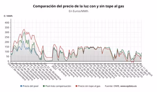 A este precio medio del 'pool' se sumaría la compensación a las gasistas, que tiene que ser abonada por los consumidores beneficiarios de la medida, los consumidores de la tarifa regulada (PVPC) o los que, a pesar de estar en el mercado libre, tienen una tarifa indexada, pero para este martes se situará nuevamente en 0 euros/MWh, situación que se repite desde el pasado 27 de febrero.
