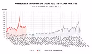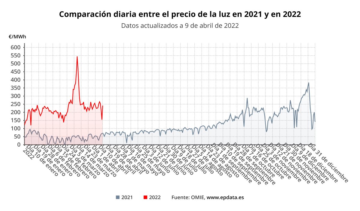 Comparación del precio de la luz entre 2021 y 2022 - EPDATA