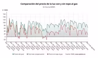 Actualmente, el mecanismo lleva sin tener efecto sobre los procesos de casación marginal en los mercados mayoristas desde finales de febrero debido al descenso del precio del gas natural por debajo de los umbrales fijados para su aplicación, pero, en caso necesario, la prórroga permitirá mantener un precio razonable, no tan dependiente de la evolución del gas natural.