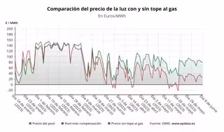 La denominada 'excepción ibérica' se ha extendido hasta el próximo 31 de diciembre, tras el acuerdo alcanzado por España y Portugal con la Comisión Europea. Así, se prolonga siete meses, hasta final de este año, y no se excluye que pueda prolongarse más tiempo si dicho marco también se prolonga.