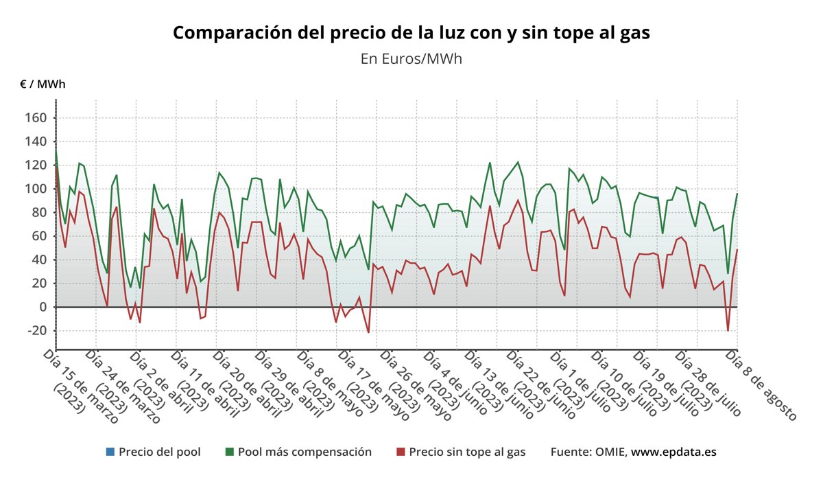 En concreto, el acuerdo no solamente representa una extensión de la excepción ibérica que ya se aplicaba, sino que implica algunos ajustes para acomodarlo, como la referencia de precios, que hasta ahora se incrementaba en cinco euros al mes, y ahora será más suave.