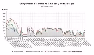 A este precio medio del 'pool' se sumaría la compensación a las gasistas, que tiene que ser abonada por los consumidores beneficiarios de la medida, los consumidores de la tarifa regulada (PVPC) o los que, a pesar de estar en el mercado libre, tienen una tarifa indexada, pero para este miércoles se situará nuevamente en 0 euros/MWh, situación que se repite desde el pasado 27 de febrero.