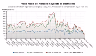 En concreto, la 'excepción ibérica' fija una senda para el gas natural para generación de electricidad desde un precio de 40 euros/MWh en los seis meses iniciales -hasta el 15 de diciembre-, y posteriormente, un incremento mensual de cinco euros/MWh hasta la finalización de la medida.