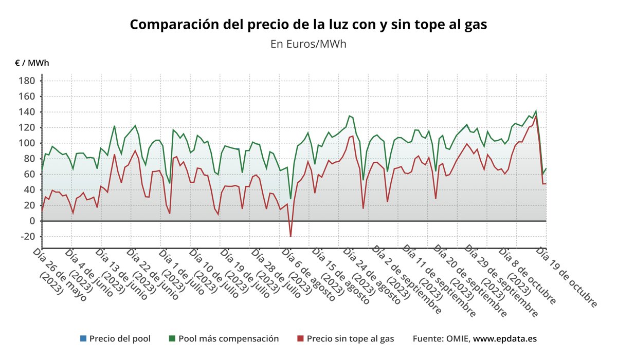 La denominada 'excepción ibérica' se extendió hasta el próximo 31 de diciembre, tras el acuerdo alcanzado por España y Portugal con la Comisión Europea. Así, se prolongaba siete meses, hasta final de este año, y no se excluía que pudiera prorrogarse más tiempo si dicho marco también se aumentaba.