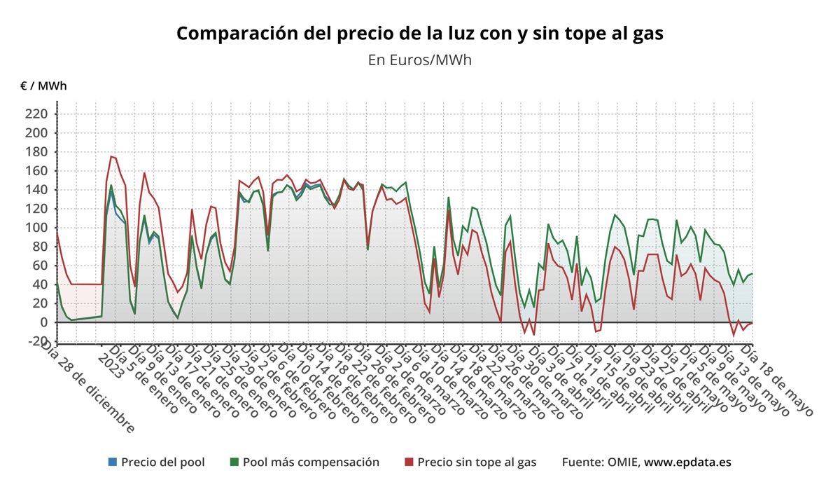 Actualmente, el mecanismo lleva sin tener efecto sobre los procesos de casación marginal en los mercados mayoristas desde finales de febrero, debido al descenso del precio del gas natural por debajo de los umbrales fijados para su aplicación, pero, en caso necesario, la prórroga permitirá mantener un precio razonable, no tan dependiente de la evolución del gas natural.