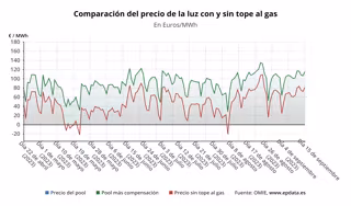 A este precio medio del 'pool' se sumaría la compensación a las gasistas, que tiene que ser abonada por los consumidores beneficiarios de la medida, los consumidores de la tarifa regulada (PVPC) o los que, a pesar de estar en el mercado libre, tienen una tarifa indexada, pero que se sitúa nuevamente en 0 euros/MWh, situación que se repite desde el pasado 27 de febrero.