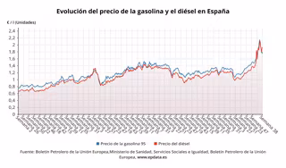 Evolución del precio de la gasolina y del diésel en España - EPDATA