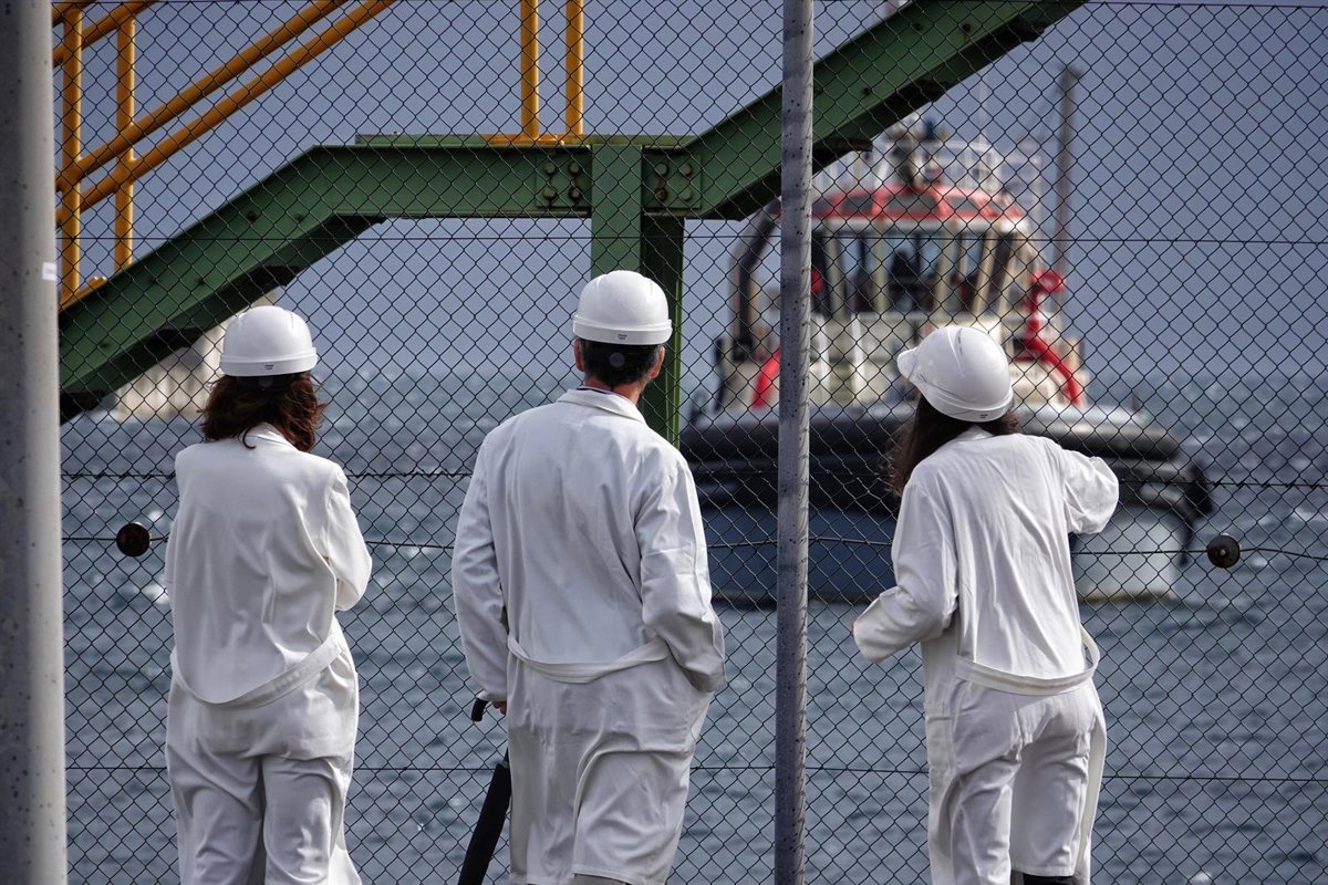 Archivo - Tres operarios durante la visita a la planta Musel E-Hub, en el Puerto de Gijón, a 26 de septiembre de 2024, en Gijón, Asturias (España). - Xuan Cueto - Europa Press - Archivo