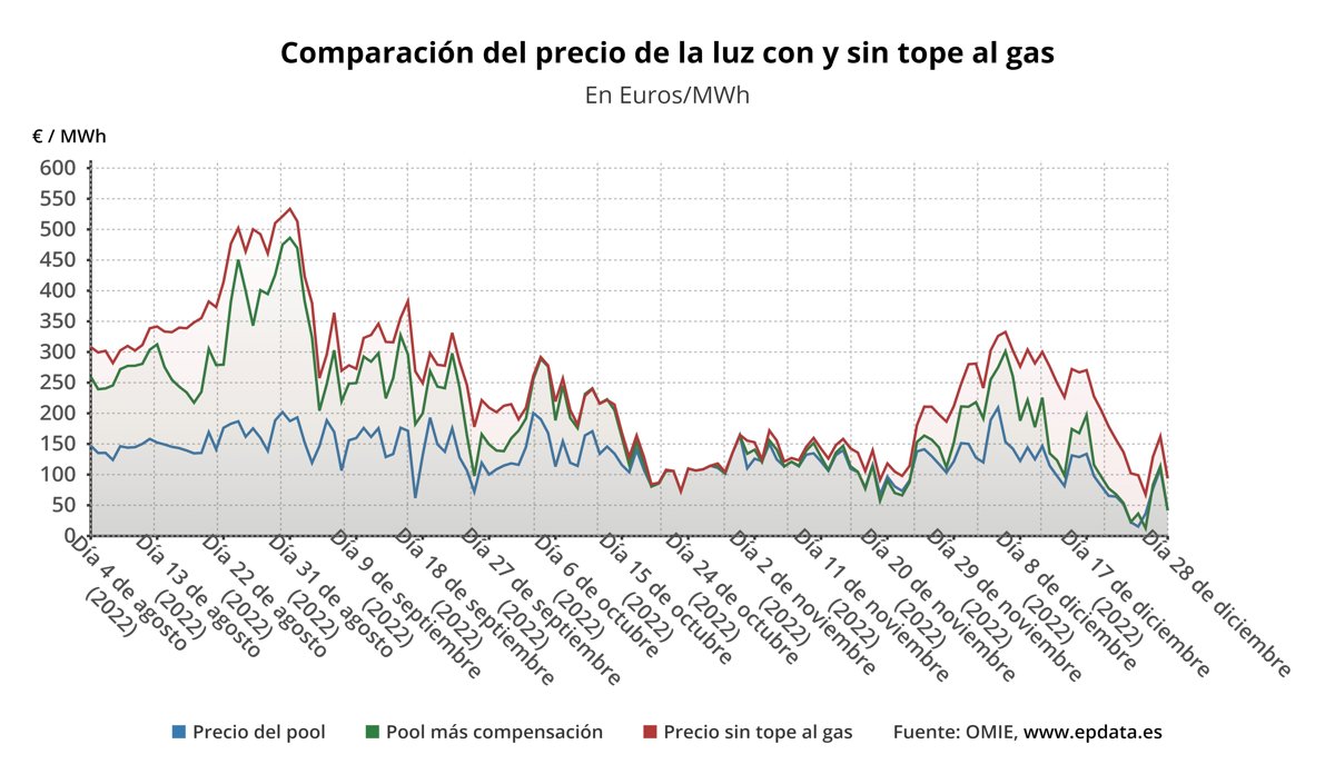 Por otro lado, ha destacado el papel de España en la gestión de la crisis energética en la UE y ha argumentado que otros países del bloque han solicitado la implantación de un sistema similar al del mecanismo ibérico. Asimismo, ha puesto en valor el papel del Gobierno en el impulso del acuerdo alcanzado el pasado 19 de diciembre en la Unión Europea (UE) para aprobar un tope al gas importado por el bloque, fijado finalmente en 180 euros.