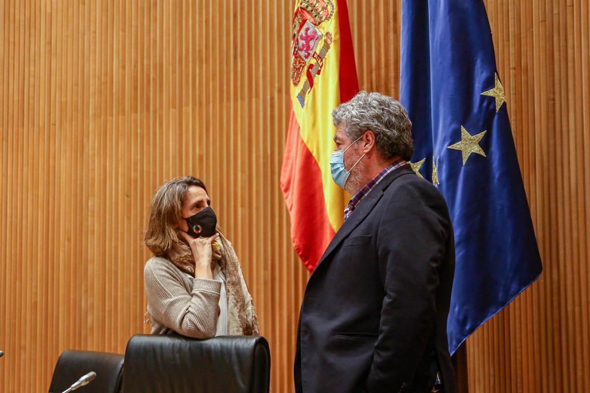 Archivo - La vicepresidenta cuarta del Gobierno y ministra para la Transición Ecológica y el Reto Demográfico, Teresa Ribera (i), y el presidente y portavoz de la Comisión de Transición Ecológica, Juantxo López de Uralde (d), - Ricardo Rubio - Europa Press - Archivo
