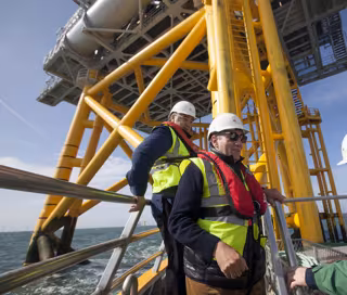 El presidente de Iberdrola, Ignacio Galán, en el parque eólico marino de West of Duddon Sands - IBERDROLA - Archivo