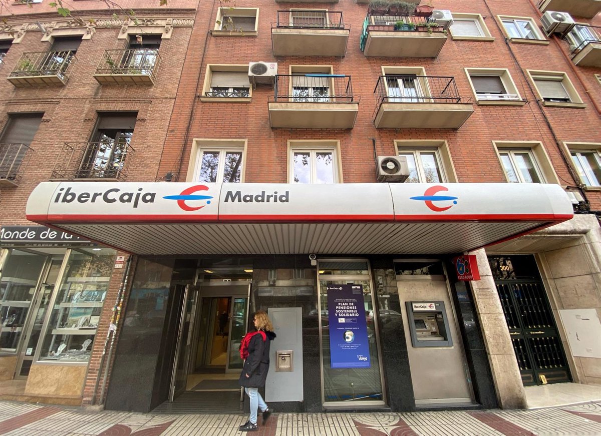 Archivo - Una mujer entra en un una oficina de IberCaja en Madrid. - Eduardo Parra - Europa Press - Archivo
