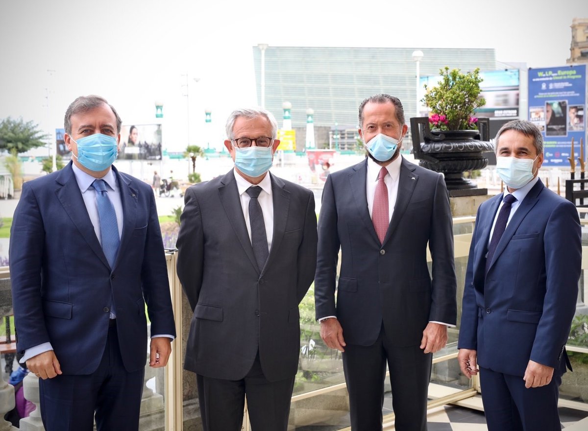 Izq-dcha: El consejero delegado de Abanca, Francisco Botas, el CEO adjunto de Crédit Agricole, Xavier Musca, el presidente de Abanca, Juan Carlos Escotet Rodríguez y el presidente de Crédit Agricole Pyrénées Gascogne, Marc Didier. - ABANCA